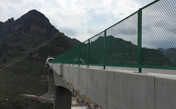 鋼板網護欄,這種網格結構簡練、美觀實用、便于運輸,安裝不受地形起伏限制,對于山地、坡地、多彎地帶適應性特強,具有其他結構隔離柵無法比擬的優點。